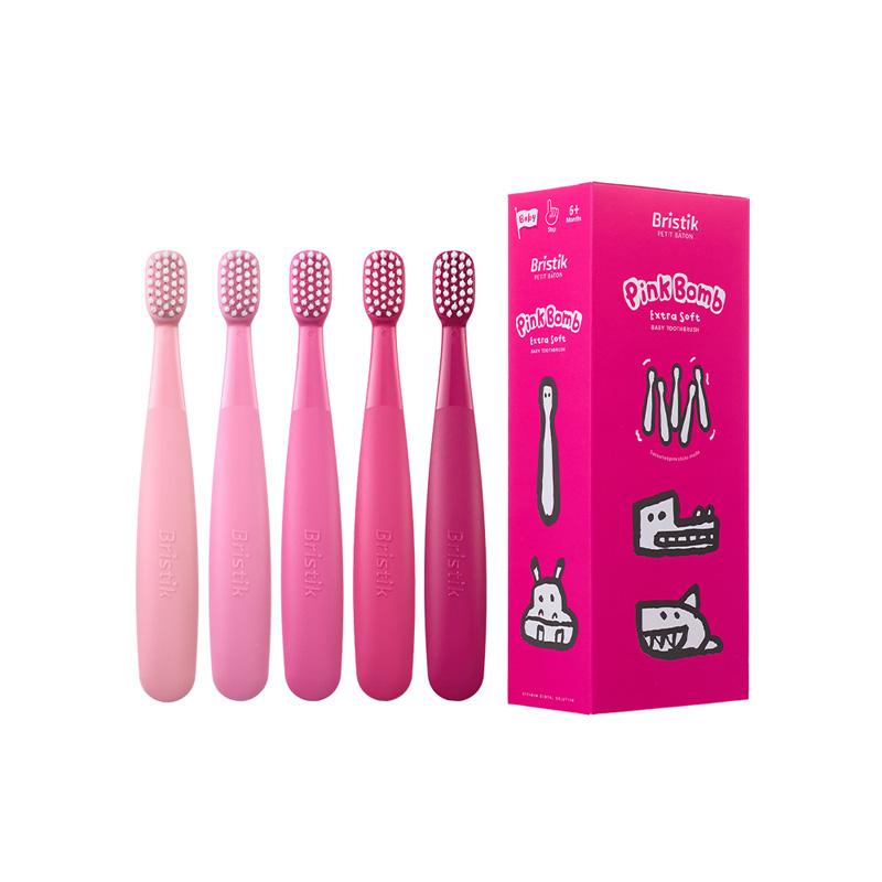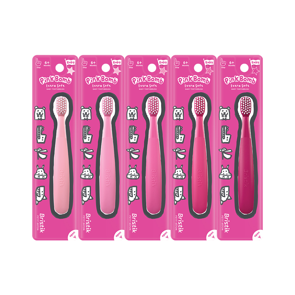 【Bristik】 粉紅魔法棒 嬰幼兒抗菌極細緻軟毛牙刷 6M+ (5入/1盒)